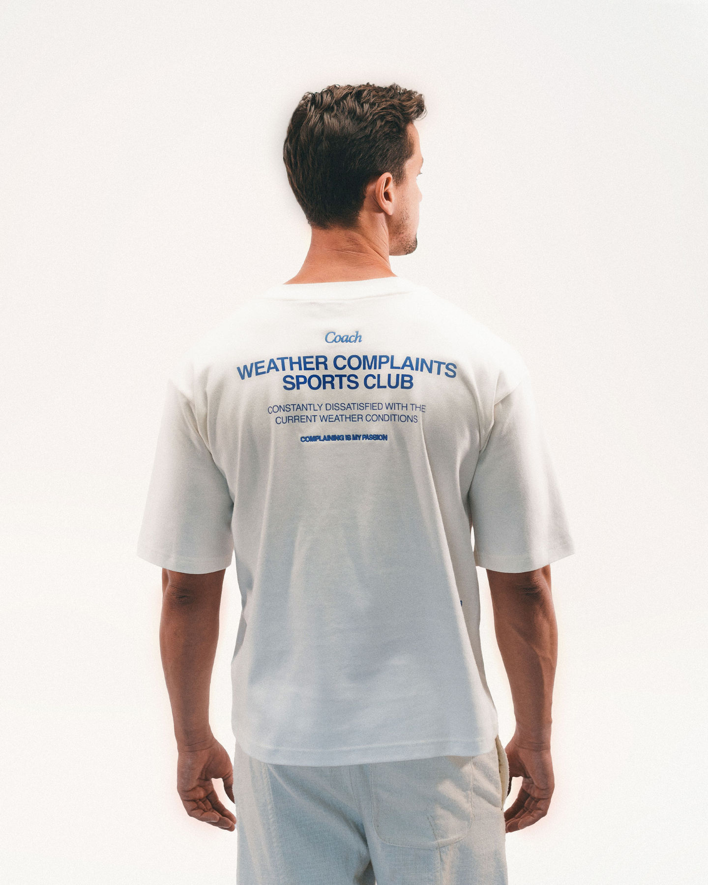 The weather’s never just right, is it? As a proud member of the Weather Complaints Society, why not wear your frustrations on your sleeve—literally? This very soft cotton, boxy-fit t-shirt lets you broadcast our shared frustrations about the weather.